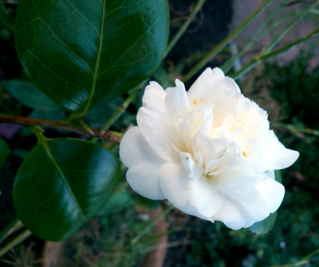 子供の頃、田舎の椿の木によじ登って遊んだり、花が咲き乱れる頃にはいくつも真っ赤なものをむしりとり花の付け根のほのかに甘い微かな蜜を吸い、実が出来る頃にはドングリのように拾いその中の種をセメントにこすり付けて椿油だといって時間をすごしたこともあり、 家人がこの椿を植えるのを見てこれがあのように育つには50年以上かもっとかかるのを想い気が遠くなりそうになったのだが、とりあえず椿だった。