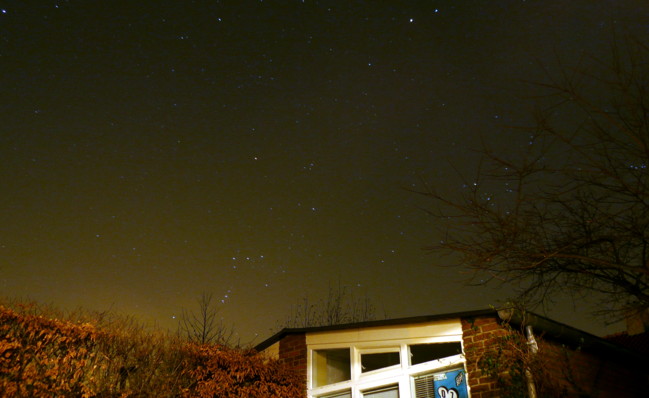 幸いなことにアイスランドの方から吹いてくる寒気が暖かい空気を吹き飛ばしているのか雲が切れ、夜中に裏戸をあけて猫を外で遊ばせるのに裏庭の南西の空を仰ぎ見ればこの時期に限らず他の時期にも何度も見上げる見知った三ツ星のオリオン星座が垣根の上にある。