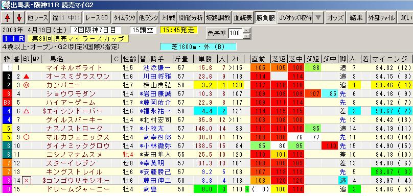 ◎ 3番カンパニー ○ 9番マルカフェニックス ▲ 2番オースミグラスワン △ 6番エイシンドーバー ×14番コンゴウリキシオー オススメはマルカフェニックス武幸四郎騎手! 高松宮杯9着以来のレースですがこのメンバーなら実力はあります。 人気の無いときの武幸四郎はやりますよ!ふふふ!!! (^_^)v