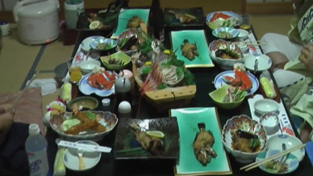 さすが、食べきれないほどの部屋食でアワビも付いていて感激でした。わが子は食事頼んでないのに、でかい海老フライサービスして頂き、朝食も子供用食事サービスして貰いました^^家族一丸で頑張ってる小さな漁村の温泉宿でした。