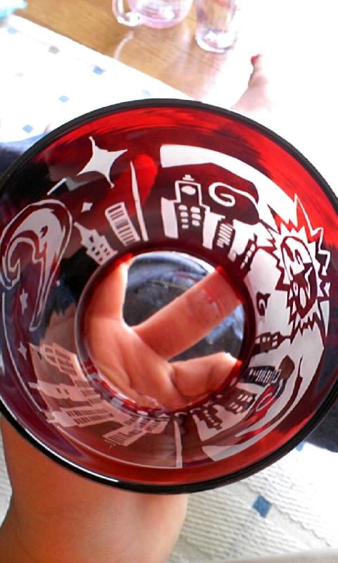 画像は自前のデザインで彫った手作りグラスです☆ 最近、もういいよって位料理日記ですみません!(笑) でも料理は趣味だからまたちょくちょく載せますw さて、住み込み先の団体のお客さんと一緒に 吹きガラスでグラスを吹いて、 サンドクラフトといってカッターでガラスを切って絵にしていく作業をして グラス2つも作って見ました☆ 可愛いでしょ??♪