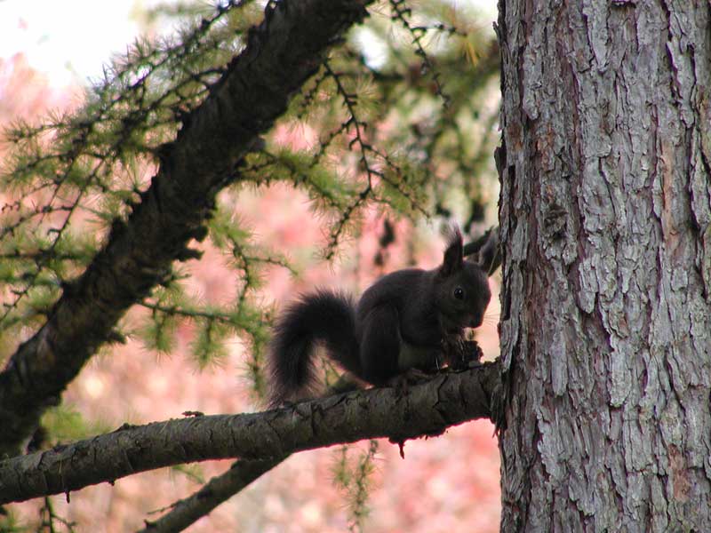 エゾリスはエサ探しに夢中なのか、こっちがカメラで撮っていてもお構いなしで辺りを見回してた。
