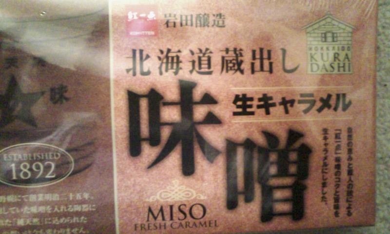 味噌味のキャラメルだよ┐(´д`)┌ ヤレヤレ 作れば良いってもんじゃないだろ。 味はまぁまぁ。 なんか中途半端に美味いのは困るな。 ジンギスカンキャラメル位のインパクトが無きゃね。 他にコーヒーと酒粕がありました。 http://www.sapporo-marchen.net/