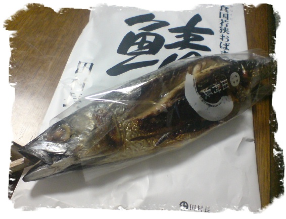 また、難波の高島屋に 物産展を催しておりました!! =小浜の焼き鯖 = ってめっちゃ大きいです!! お店の人曰く ''' 少し電子レンジで加熱して ''' '''生姜醤油で頂くのがいいよ!! ''' ってその通リしてましたして… !!! うまい!!! 焼き鯖にはさほど 塩味はないのですが 生姜醤油をつけると 病みつきです… 焼酎お湯割りで ガンガンいただきました!! って焼き鯖の残りはまたいただこ!!! Wakuwaku (^^♪