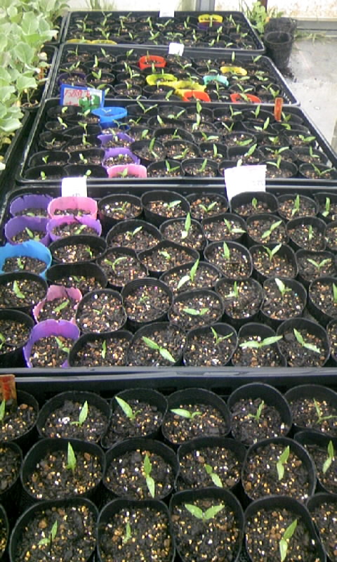 今日は出荷のあと、種蒔きしていた伏見甘長と万願寺甘とうのポットへの移植。 まだちょっと小さいけど水の管理がしやすいポットに移しました。 ブロッコリーの定植が遅れ気味なのでハウス内の苗を置くところがなくなってきています。 まだあとピーマンや長茄子の移植もしなくては。 済んでからホームセンターに買い物に。 帰ってから収穫。 本日の収穫で菊菜は終了。