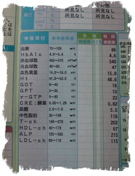 年末年始からの 暴飲暴食が めっちゃ気になって おりました… 恒例の = 健診結果がでました… = =ビックリ! = ''' 正常値! ''' 肝機能 ''' 問題ナシ! ''' A1c、尿酸値、気になるところも正常値でした… ただHDLが低くLDL高いので あまりいい傾向ではないかな… ってまた、気を引き締めて 浮き輪を減らそう(^O^)/ BMIは上限いっぱいでした(^^ゞ Wakuwaku(^^ゞ