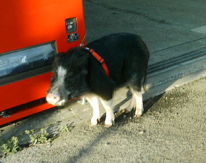 写真撮るのため、近づいたら、喜んだのか、ブヒブヒ言ってましたよ♪結構、飼ってる人いるのかな?でも、初めてみたなぁ♪