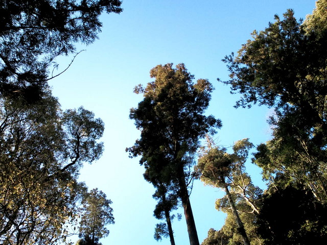 いい天気が続いています。 いい季節です。 木漏れ日を浴びながら、森林浴なんて最高です。 気分も良いし、元気になります。 見上げると、木々の間から青空が・・・。 今日も一日、がんばりましょう。