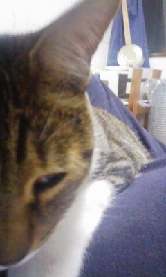 ちょっと機嫌悪いネコです。 でも睡魔の方が強いらしく目がトローン 迫力0