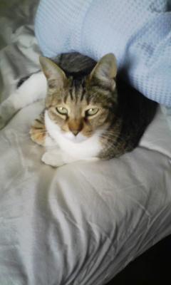 フトンを占領 なに?って感じでこっち見てます でも許す(^_^)