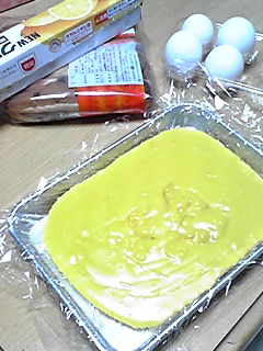 黄卵、砂糖、小麦粉、コーンスターチ、牛乳を混ぜ混ぜ♪