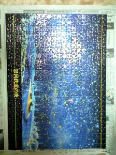 500ピースパズル完成だぁ~!!! めっちゃ嬉しいです、がんばったー!!! 電気を消すと光るんです、綺麗なんですよ~♪♪ 最後の1ピースをはめる時のドキドキ感と感動と喜びとごちゃまぜで興奮しました(笑) パズルって少ないピースしかやったことなかったので…とても達成感…!! アニメパズルじゃないところが自分的に悔しい感じですが、もらい物なのでw ちなみに貰ってから約10年放置もとい保存、というかあたためて、そうあたためてたんですそして作りました!(笑) 10年越しに日の目を見た銀河鉄道の夜なのでした。 999のが良かったかな?w