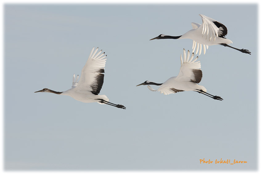 大空を自由に飛ぶ丹頂鶴 他の鳥とは違うオーラを持っている。