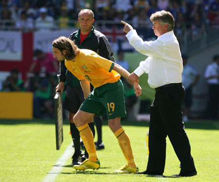 写真はヒディング監督がでかいFWを投入するところ。