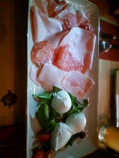 で、相方と私で、前菜とツマミとメインディッシュ、それに画像のモツァレラさんとハム太郎さんのセットを頼みました。