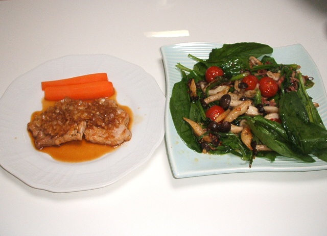 大きめの皿にほうれん草を盛り、アツアツの上記を炒めをかけて、レモン汁とブラックペッパー