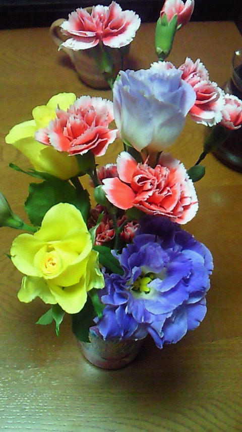 部屋の中に花を飾ってみた 花瓶がないから ジュースの缶に(笑) まぁ これはこれでいい感じになったかな^^
