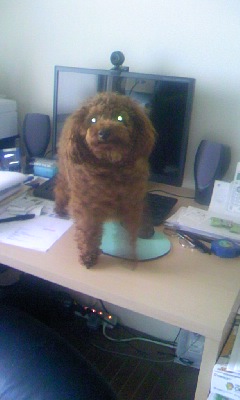 もっとおチビの頃は、ベッドに飛び乗って降りられなくなって「くぅーん」と鳴いていました(笑)