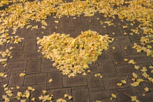 50が近くなったおっさんが夜の公園で落ち葉をハートの形に集めている・・・いやぁ、「変なおっさんが公園で・・・」って、警察に通報されなくてよかった!w