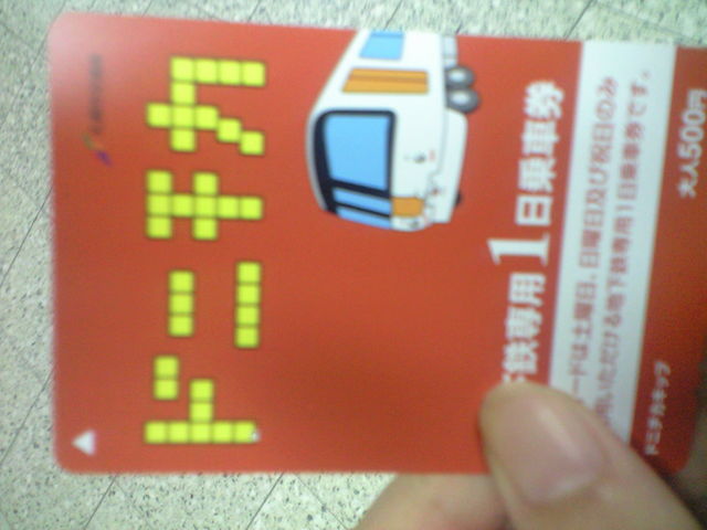 友達と飲んできました~。 生4杯。 ちょうど良い感じで酔っています。 食べ物は病院食で慣れちゃっているので、何を食べてもしょっぱくってあんまり食べられなかった(泣) 行く途中に地下鉄で知らない人から、これから切符買うでしょ。 と、強引にドニチカ切符という土日地下鉄乗り放題の切符を渡された。 BANNYは福祉パス持ってるんで地下鉄乗り放題なんですけどね~。 切符売り場に寄贈してきました。