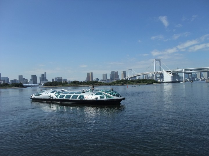 今日も お台場に行ってきました。 今日は 水上バスに乗りました。 奇抜なデザインの水上バス「ヒミコ」を 間近で見ることができました。