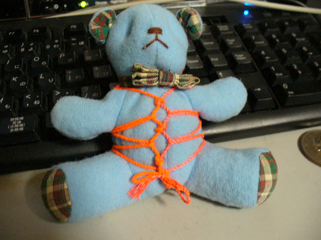 可愛いテディベア君に亀甲縛り・・・なんてことを!(笑)気持ち良さげやないですか!
