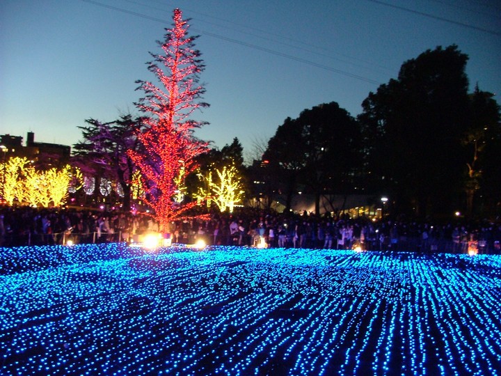 > 妖♪さん そう、そうです。 この「地面に配置された青いイルミネーション」は 人だかりで 何も見えなかったです。 (反対側まで歩いて行ったら やっと スペースに余裕があって見られました)