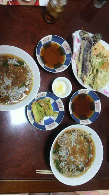 夕飯だぉ しらすおろし蕎麦 魚介と野菜のサックリ天ぷら ブロッコリーの茎の味噌漬け 良い年越しを(o・・o)/~ 私もこれから初詣です♪