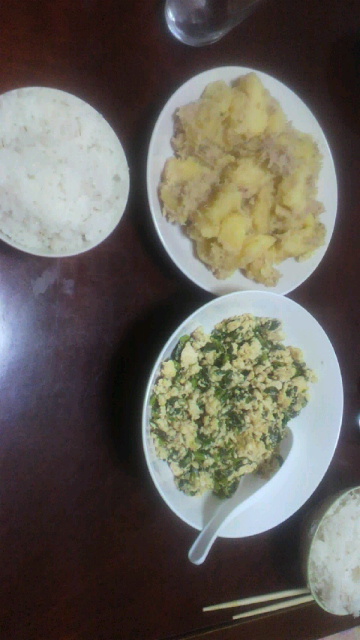 ツナ缶詰ジャガイモバター 大根の葉と豆腐のホロホロ炒め ジャガイモ茹でてから 皮剥いたら手がやけど状態(笑)