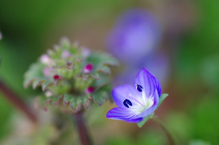 オオイヌフグリお隣の赤い蕾みの草はホトケノザだおwって むくろじゅさんの パクリやんけw(〃'∇'〃)ゝエヘヘ