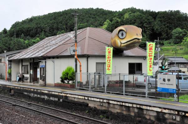 啓蟄を迎えて、冬眠してた動物も、土の中から顔を出す 写真は、なんと駅なんです^^岡山県北、JR津山線の亀甲駅 かめのこう駅と読みますが、駅舎の上に、亀の首が乗っかってて 目の部分が、時計になってました 町名も素敵で、美咲町(みさき)です 名物の無い、田舎町も、なんとか町興しにと、工夫してますね 普段、通り過ぎる街にも、意外な発見があるもんです