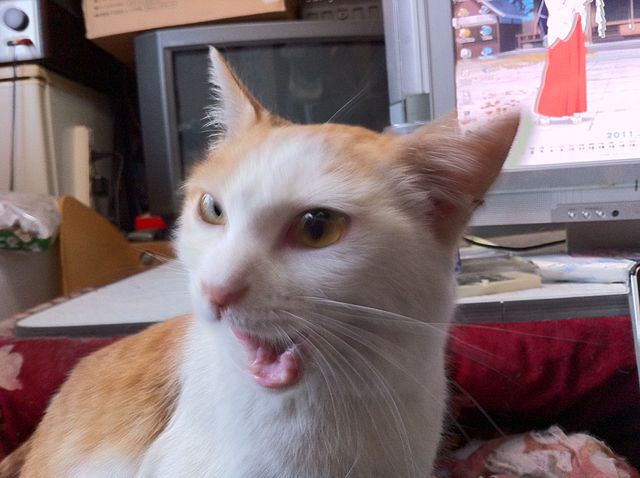 写真は怒っているのかあくびなのか?普段見られない顔ですよね