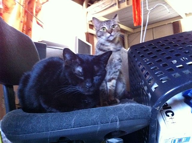 ちょうど、写真の様な珍しい2ショットを見付けて撮影したのですが、直ぐ様千代子様に襲い掛かって、追い払い、ちゃっかり自分が隣りに居座り、ジジコ様にグルーミングを始めました!