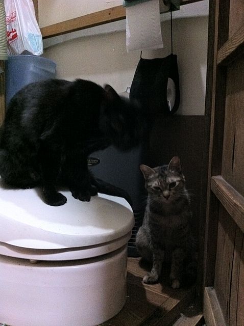 ジジコ様と千代子様がトイレでセラミックファンヒーターを付けて、くつろいでいらっしゃいました!!