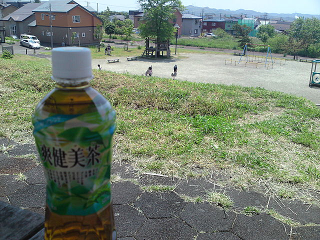 大きな公園で一休みしょうかとお茶を買ったとたん