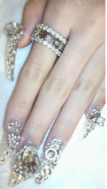 今日はお客さんのネイルをアップさせてもらいました みほの作品ですww これは4時間はかかりますね こってこてだけど色シンプルで綺麗でしょ?? 某有名キャバ嬢さんの爪です かわいかったぁ