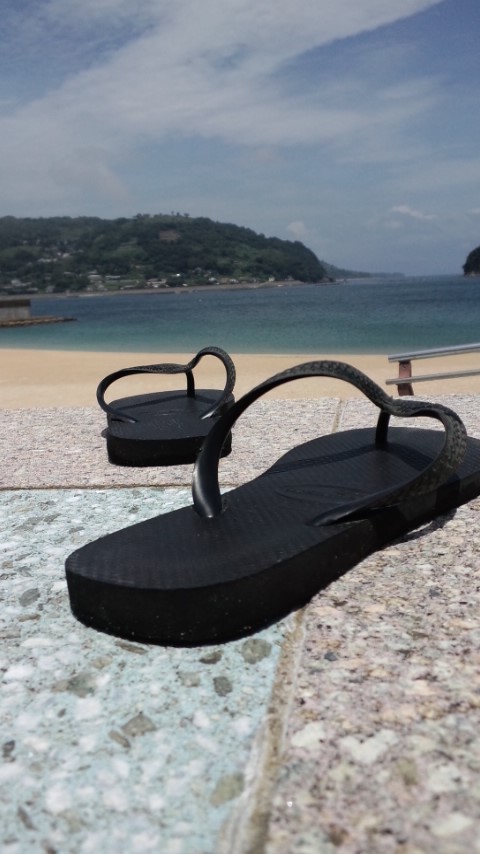 あまりの暑さに海へ 泳ぐつもりで海パンまで持参したけど 足だけ浸かるだけで満足したかな~ 準備したものは夜の温泉用に役だったし まぁまぁリフレッシュ