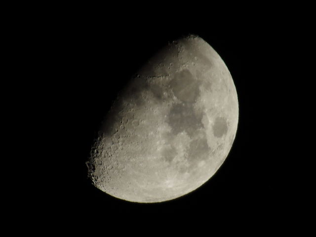 台風も去って 天気が良くなって おっ月様も出てきたので 久々の月の写真 半月の月に山脈発見 宇宙人の秘密基地も写ったら すごい発見になるかな(笑)