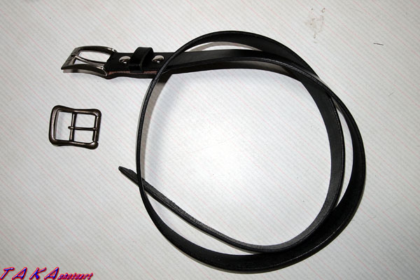 最終的には体で合わせないとベルトの穴の位置が分からないので、会社に楕円形の4x5mmのポンチを持って行き穴開けをしました。