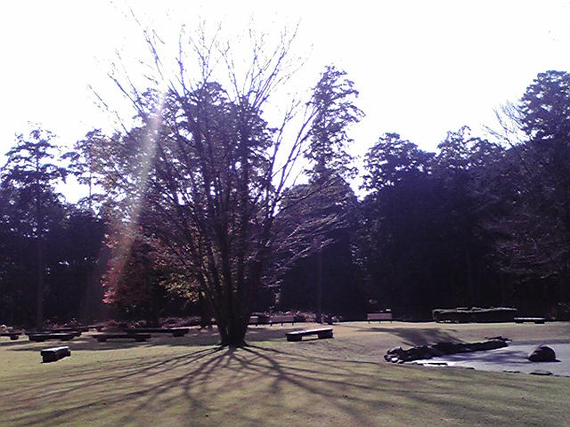柔らかな陽を浴びて、木が秋冬用の衣装を羽織ってますね。
