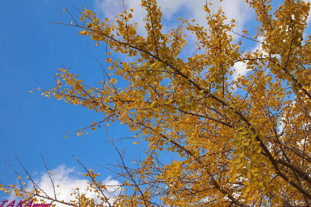 今日の風で黄色い葉が舞踊ってました。