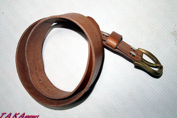 さて、今日は先日カットしたヌメ革をベルトにしてみました。