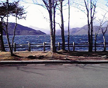 湖畔の木が、纏う(まとう)ものなくて寒そ~。