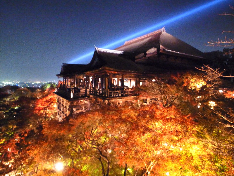 景色のライトアップとは別に、 右手前音羽山のほうからレーザー光みたいな青いライトアップがされてるんです。