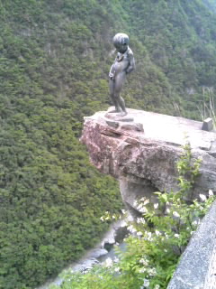 あの銅像の頭の上に、5円玉を、乗せましたよ