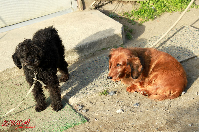 今日の写真は温かい日差しの中ゆっくりとしている、ワンコです。
