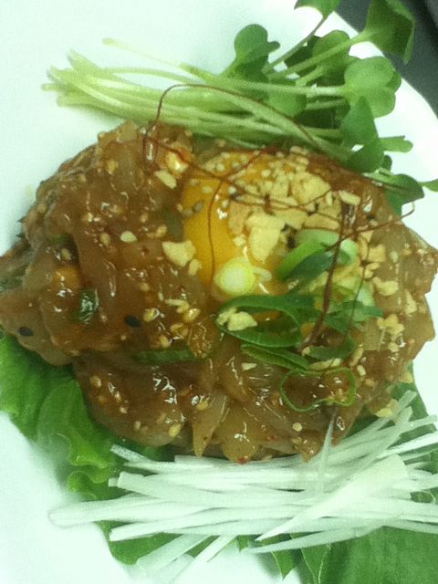 イカかぁ…日本ではシソとか明太子とか合わせるけど、あと納豆とか。けど、韓国料理にはどうだろ^^;