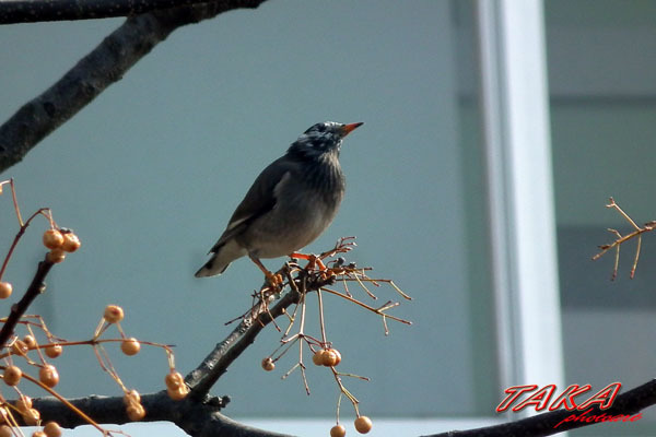 外では木々に小鳥たちが餌を求めて木の実をつついてます。
