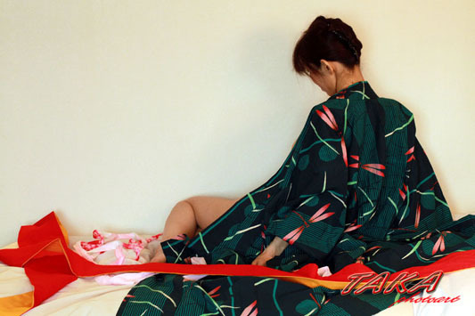白いベットカバーに白い壁でしたので浴衣姿が浮かび上がりますね~