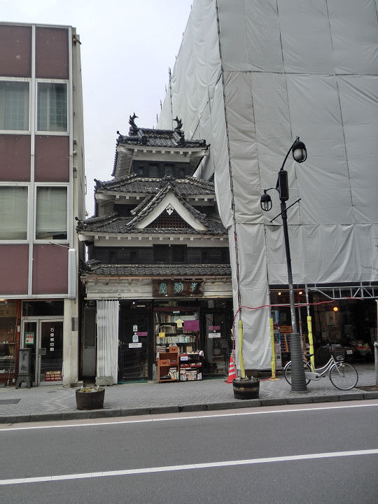 写真は 松本市内にあった、松本城の形をした古本屋さん。